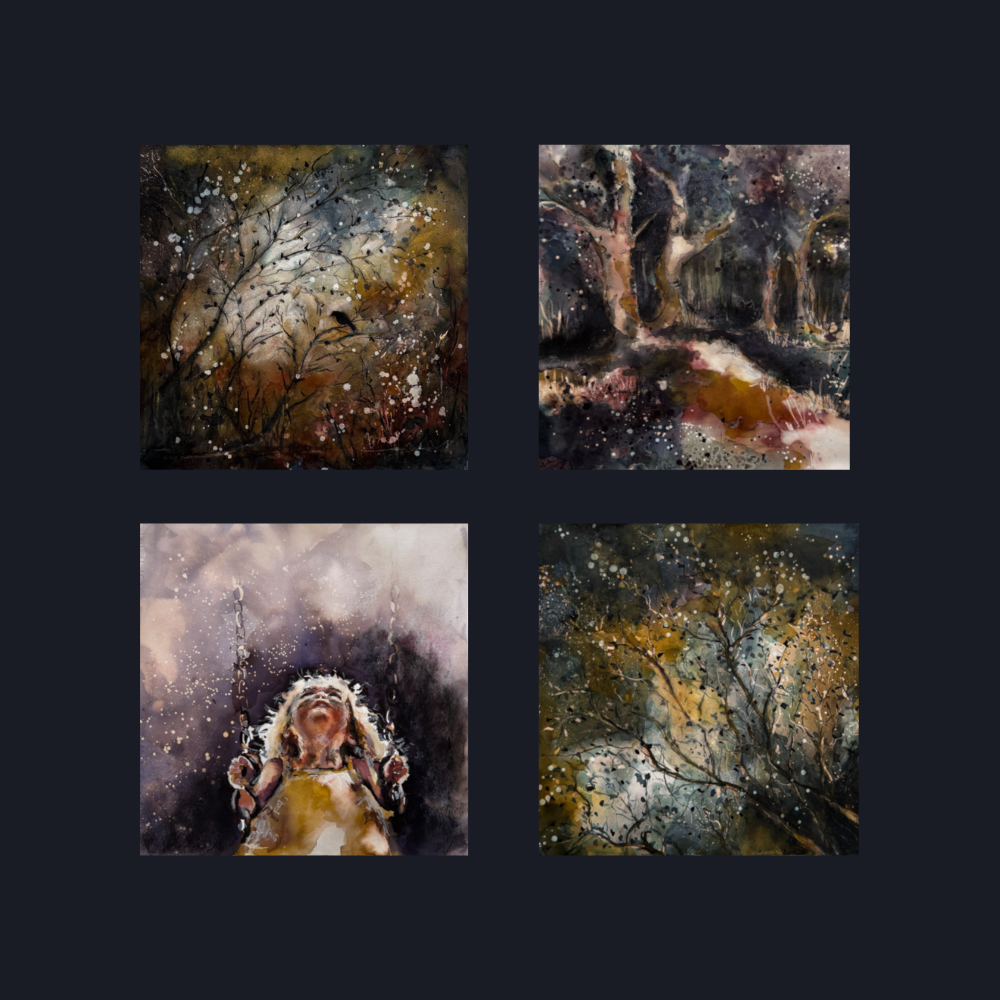 For Kallie, art is joy - and her Collection 3 pieces, Magic, Finding My Soul, Shades of Green, and Blackbird, are vivid reflections of the happiness she feels when creating.
